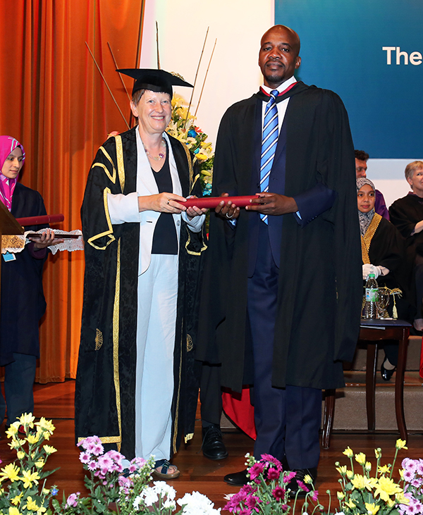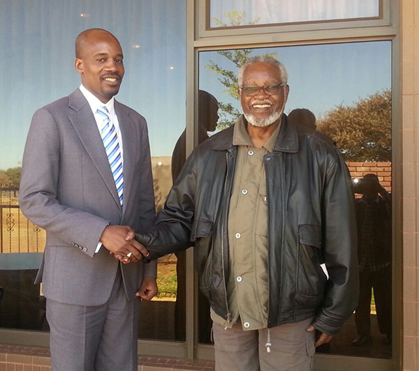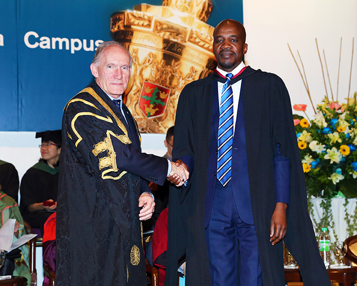 Mr. Shikongo being congratulated by Professor Sir Andrew Greenaway,