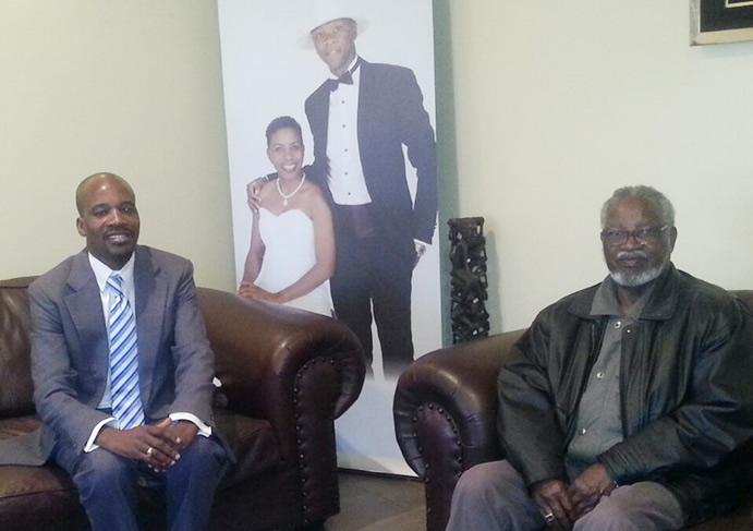 Mr. Shikongo interviewing H.E. Dr. Nujoma for his research. He found him to be a walking library indeed.